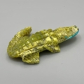 Zuni Fetish Green Serpentine Alligator with Inlaid Turquoise Eyes and Teeth. This mischievous creature features beautifully textured carved armor and grins with a mouthful of turquoise waiting just for you.